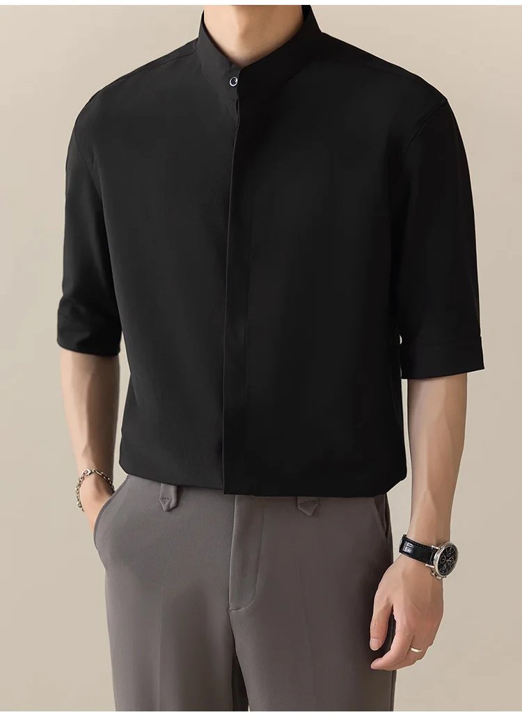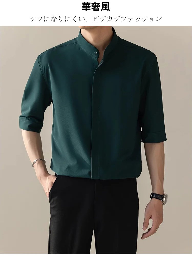 アイロン不要アイスシルク5分袖シャツ
